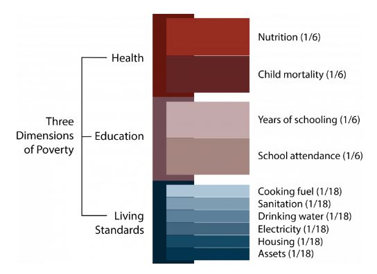 그동안 빈곤에 대한 연구가 소득을 중심으로 이뤄졌다면 MPI는 건강, 교육, 생활수준까지 수치화한 지표입니다. MPI는 총 10가지 지표로 평가하는데 지표 중 3분의 1 이상이 부족하면 극심한 빈곤을 겪는 ‘MPI 빈곤층’으로 분류합니다.