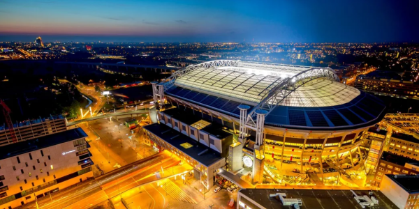 (전기차배터리를 태양광모듈로 활용한 네덜란드 요한크루이프 축구장, 출처 일렉트렉)