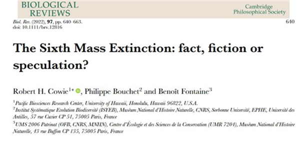 '6번째 대멸종 : 사실 혹은 소설인가 아니면 추정인가?'라는 연구결과를 바이올로지컬 리뷰스(Biological Reviews)에 발표했습니다.