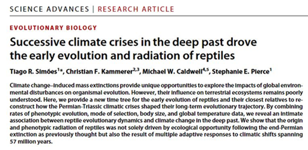 Vertebrates on the brink as indicators of biological annihilation and the sixth mass extinction, Proc. Natl. Acad. Sci. U.S.A. 117 (24) 13596-13602, https://doi.org/10.1073/pnas.1922686117)지난 8월19일 미국 하버드대, 노스캐롤라이나주립대, 캐나다 앨버타대 등의 공동연구팀은 ‘과거의 연속적인 기후위기는 파충류의 초기 진화와 복사를 주도했다’는 제목의 논문을 사이언스어드밴시스에 실었습니다.