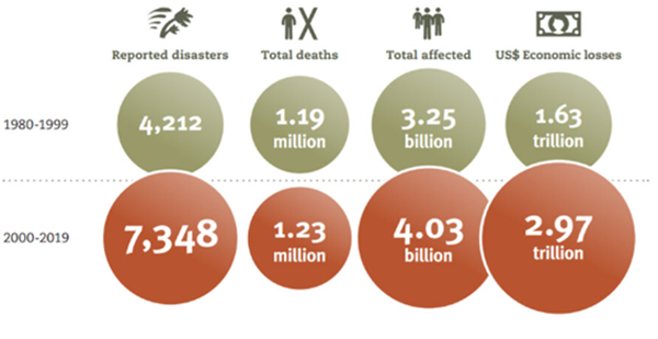 유엔 산하 재난위험경감사무국(UNDRR)이 발표한 ‘2000~2019년 세계 재해 보고서’에 따르면 지난 20년 동안 전 세계에서 7,348건의 자연재해가 발생해 123만 명이 사망하고, 40억 명이 피해를 당했다고 합니다. 이쯤 되면 재해가 아니라 ‘기후재앙’이라 할만합니다.
