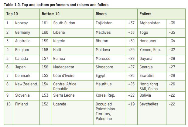 그러나 코로나19와는 별개로 국가의 핵심정책 변화로 순위가 하락한 나라들도 있습니다. 여성 노동권이 급격히 악화된 아프가니스탄, 최저임금제도가 없는 토고, 사회적 지출예산이 감소된 에스와티니, 온두라스, 세이셸, 홍콩 등이 이에 해당합니다.