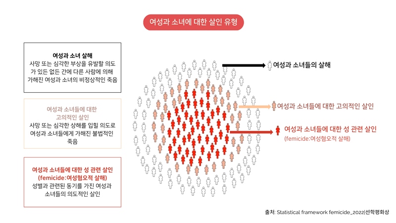 2021년 여성과 소녀에 대한 의도적인 살인 사건 10건 중 약 4건이 형사 사법 기록 및 조사 관행의 국가적 차이로 인해 성별 관련 살인으로 식별할 수 있는 정보가 충분하지 않다고 하니, 실제로는 이보다 더 높은 여성 살해가 일어나고 있다고 볼 수 있습니다.