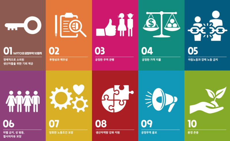 한편 ‘fairtrade’는 고유명사처럼 한마디로 공정무역 국제 시스템이 정한 광범위한 경제적, 환경적, 사회적 기준에 따라 생산되는 ‘식품과 상품’을 가리킵니다.