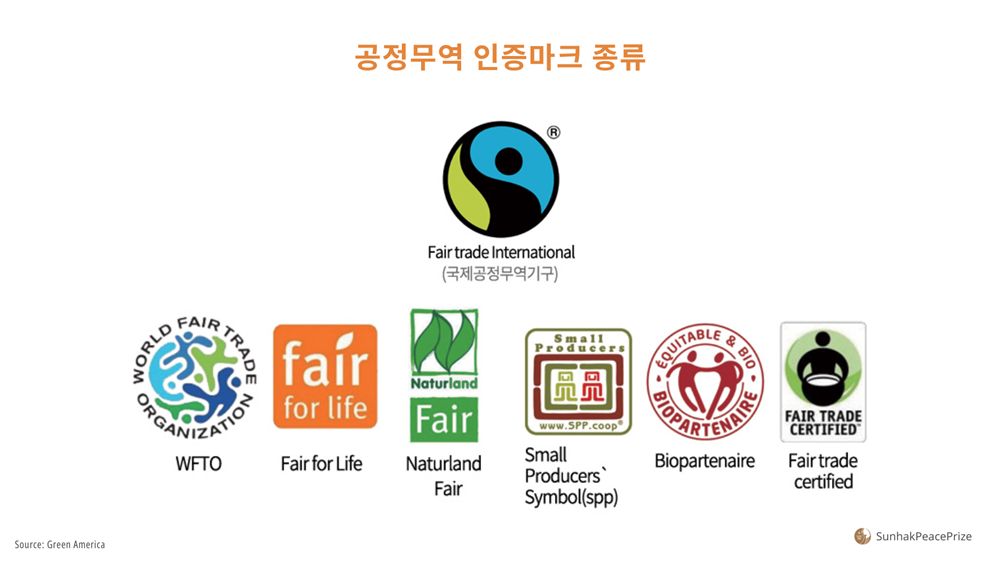모든 제품을 구매할 때마다 공정한 생산-판매 과정을 거치는지 조사하기는 거의 불가능합니다. 대신 세계 최대의 공정무역 단체의 인증마크를 확인해보세요!