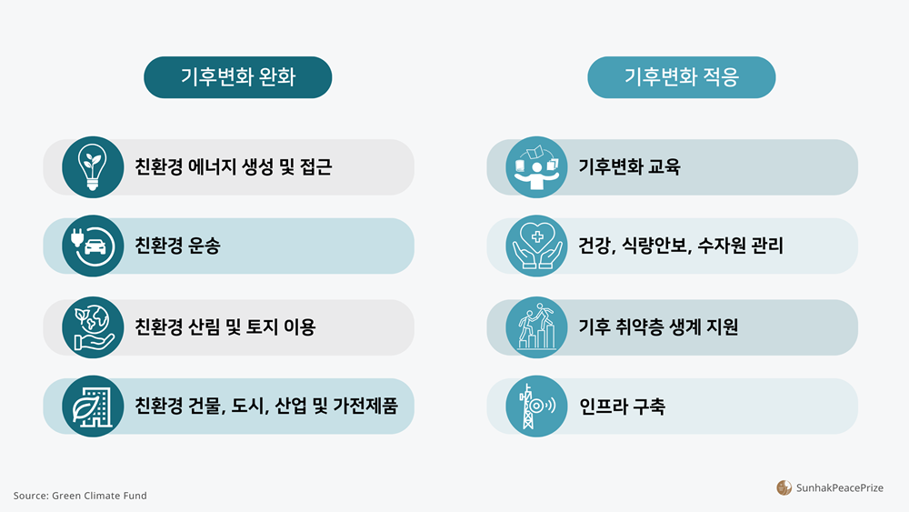 녹색기후기금의 주요 목표는 ‘기후변화를 완화하는 것’ 그리고 ‘기후변화 적응을 돕는 것’입니다.