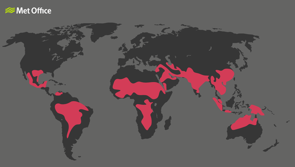 메트 오피스에 따르면, 지구 온도가 2°C 상승할 경우 전 세계적으로 극단적인 열 스트레스에 영향을 받는 사람의 수가 현재의 68백만 명에서 약 10억 명으로 증가하게 됩니다.