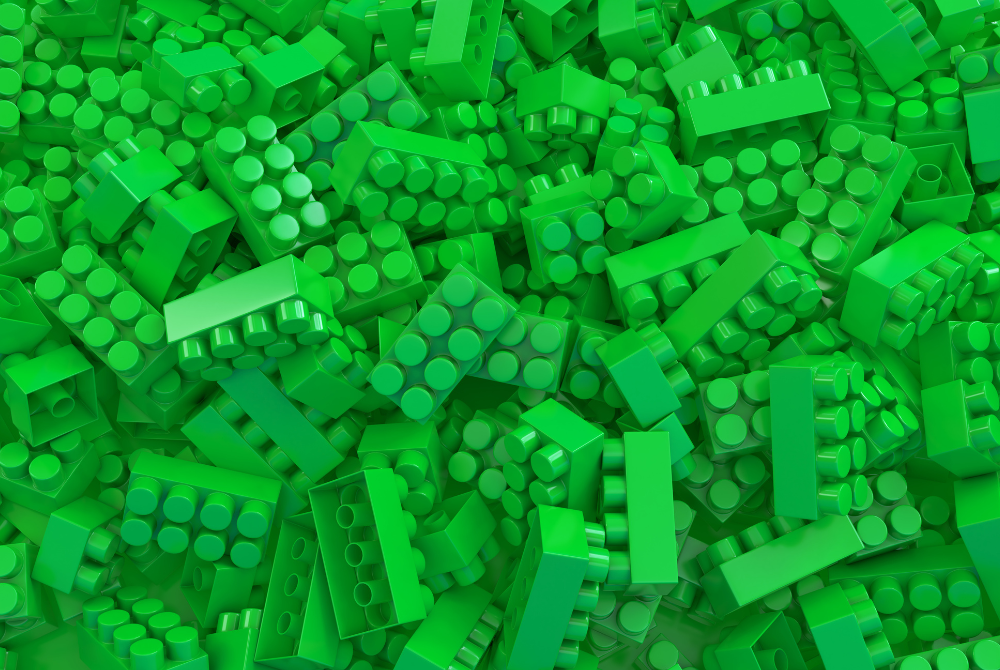 2. LEGO: 기존 플라스틱 대신 사탕수수 기반 바이오 플라스틱으로 블록을 제작합니다.
